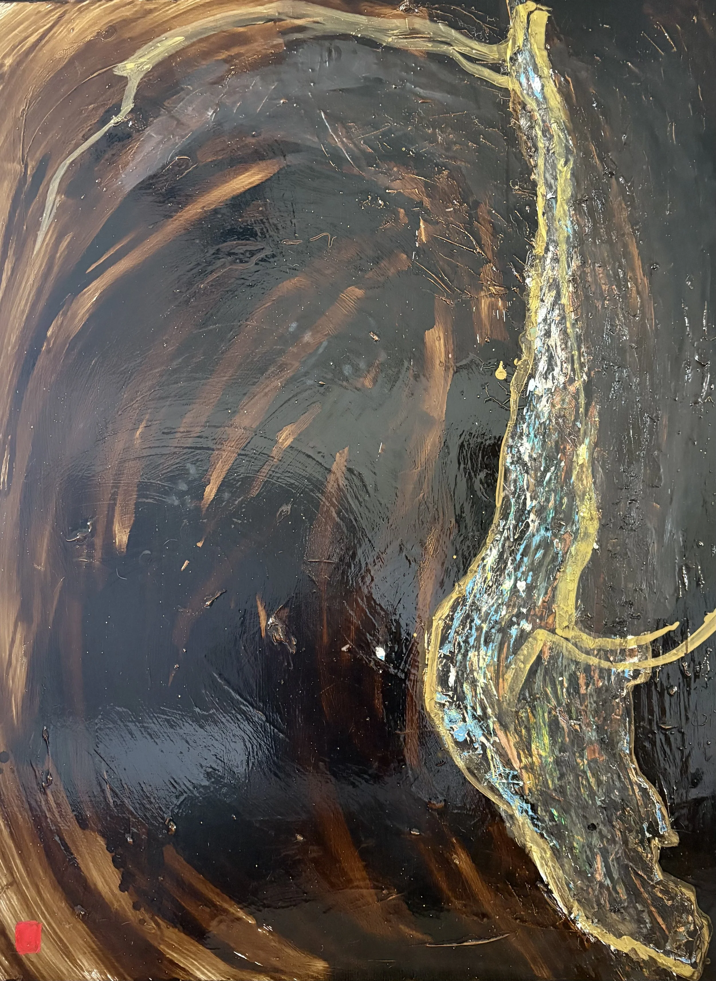 I became an artist when I realized that the painter and the person are one. My artwork is a record of how far I’ve come and how much further I still have to go. The process I go through in my art making parallels the struggles I have gone through in my personal life. I approach my paintings spontaneously because I have found that planning never works out in life and I see my roadblocks as challenges to overcome. I have found the process of living and painting enriches the paintings and adds depth to my work. Each painting is a page in my story, the narrative being the lessons I have acquired along the way. My days being a never-ending landscape of peaks and valleys, rainstorms, and sunny days. The layers in my paintings are the scars and lessons of life.